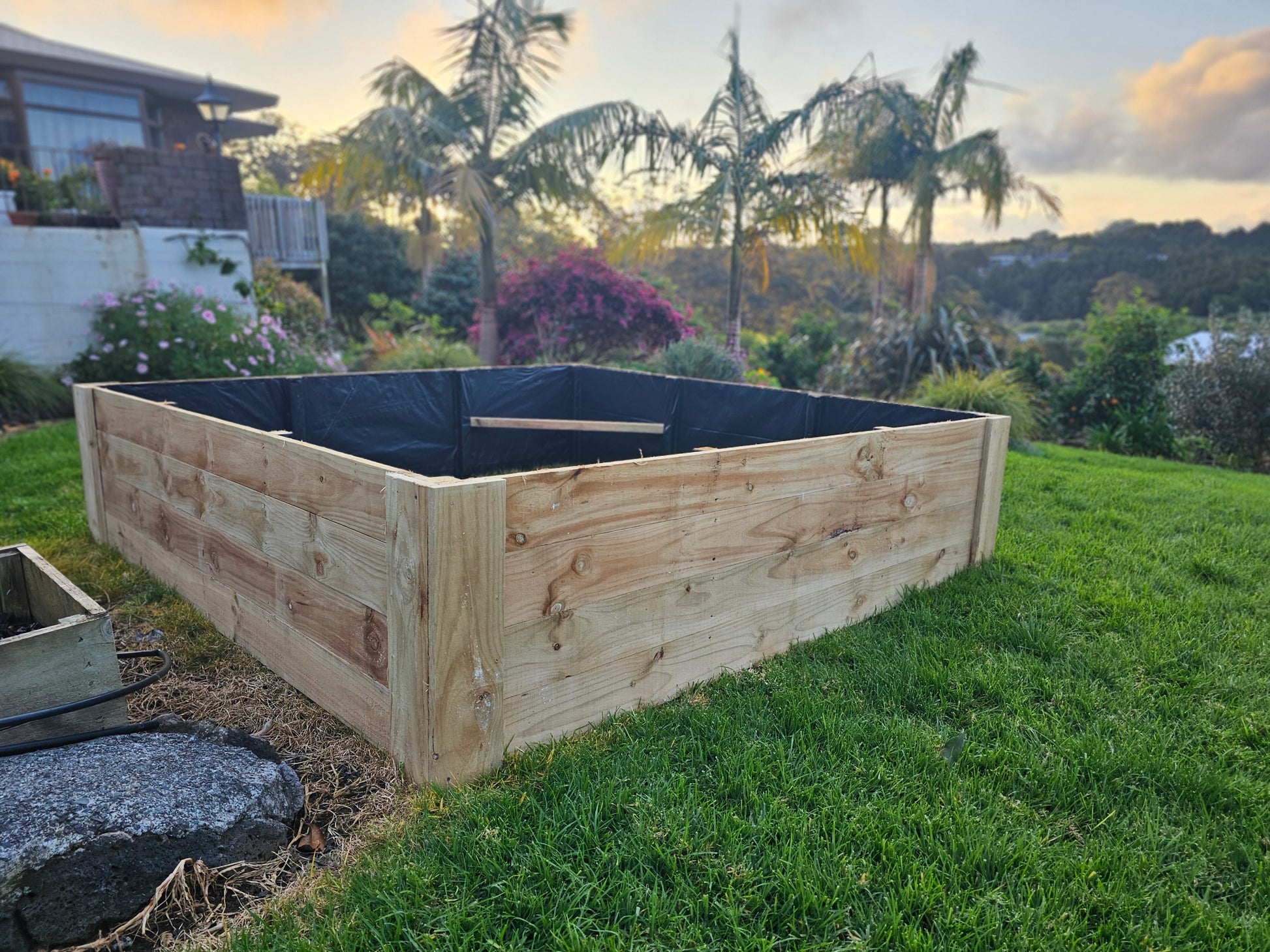 2400mm x 2400mm x 600mm in height This quality New Zealand-made planter is built with H3.2 Treated timber pailings, and H4 Treated battens for additional structural support. To ensure maximum product durability, we have gone the extra mile and taken precautionary measures and installed a layer of Polythene to reduce chemical any possibility of chemical transfer creating a visually appealing product that will provide fresh produce to cater to your needs